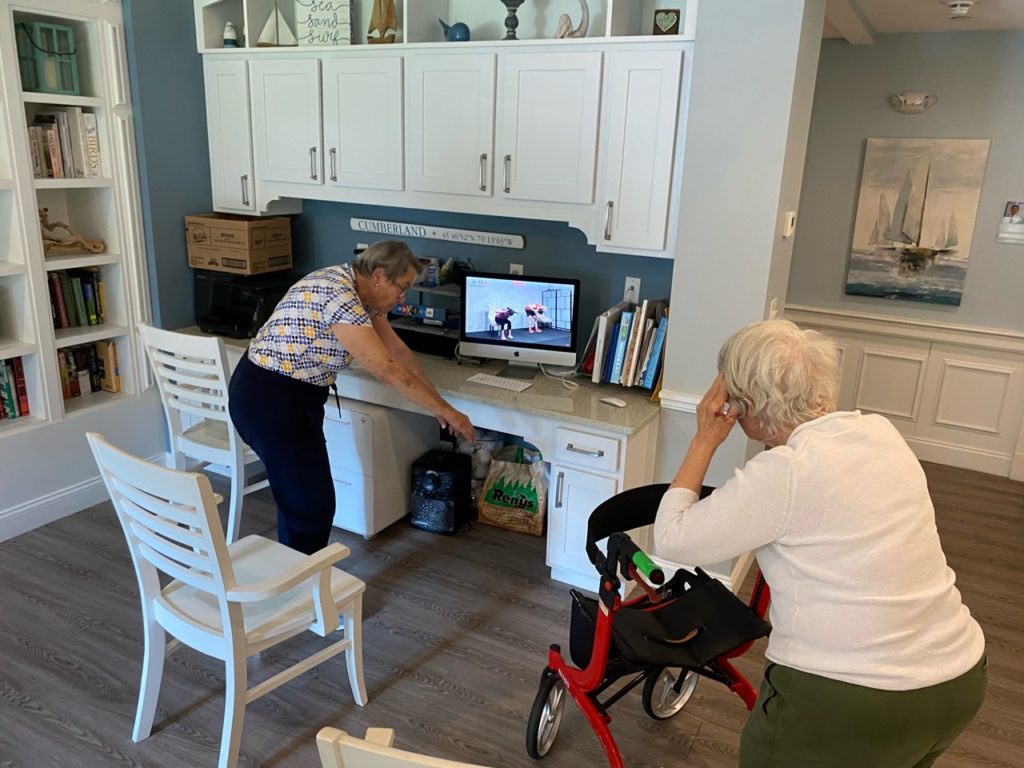 Once the pandemic took hold, virtual communication became a vital part of everyday life at The Mooring. In addition to personal videoconferences, we quickly transitioned traditional in-person activities – including group exercise classes and live music to virtual alternatives. Housemates adjusted quickly to the change, and participation – and enthusiasm remained strong.